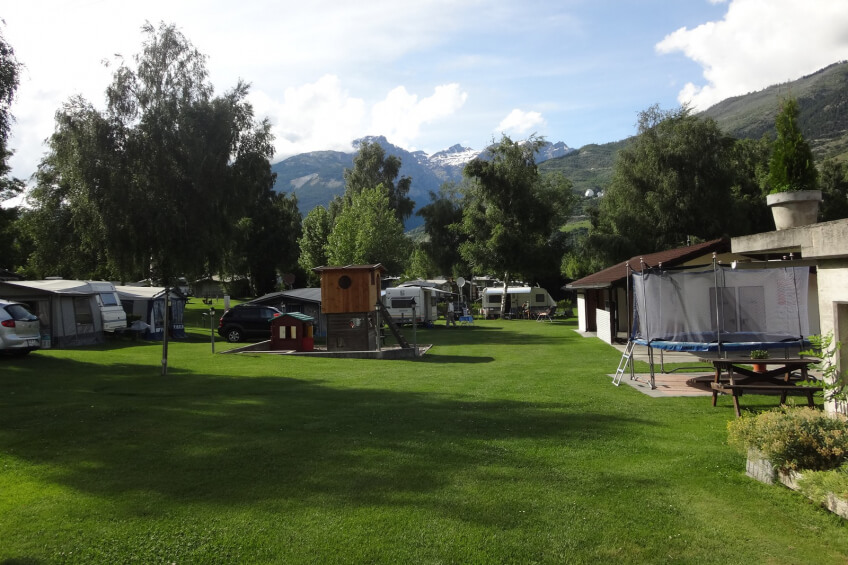 Erstklassiger Campingplatz in guter Lage mit familiärer Atmosphäre. Eigener Shop, Kinderspielplatz, Restaurant und gepflegte Sanitäranlagen und Privatbad. Ausgangspunkt für Ausflüge nach Leukerbad, Montana oder Zermatt.
