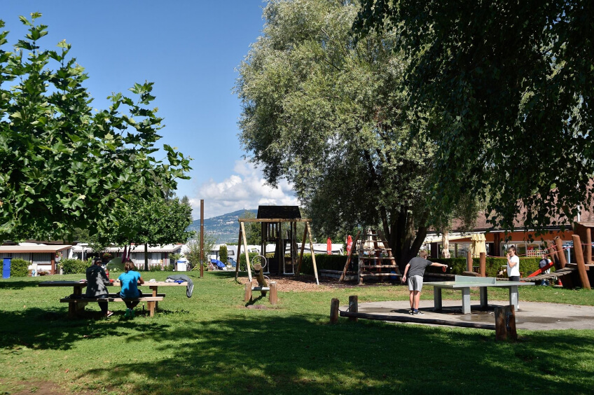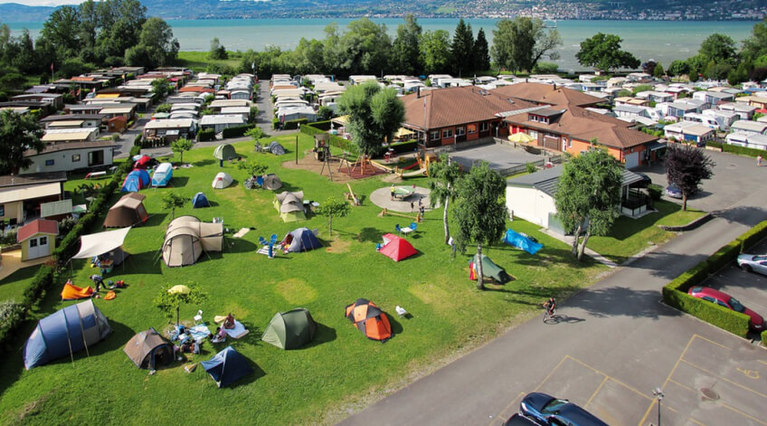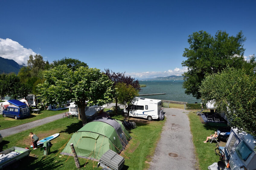 Der Campingplatz befindet sich nur 9 km von Montreux entfernt, zwischen Wald und See, im ebenen Naturreservat "Les Grangettes". Der Campingplatz ist für Familien sehr gut geeignet, bietet er neben einem grossen Kinder-Spielplatz auch einen langen Strand mit geringer Wassertiefe. Naturliebhaber finden Ruhe und Entspannung. Die herrliche Aussicht auf den Genfersee und das Schloss Chillon vervollständigen das spezielle Ambiente des Campingplatzes.