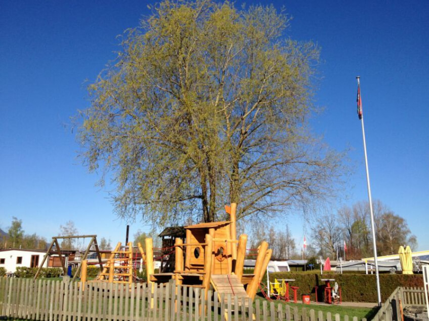 Es gibt wenige Bäume auf dem Campingplatz