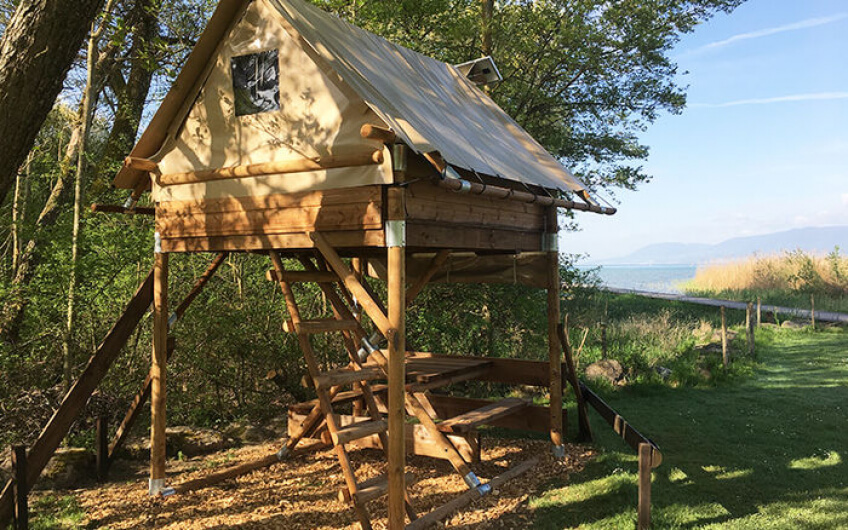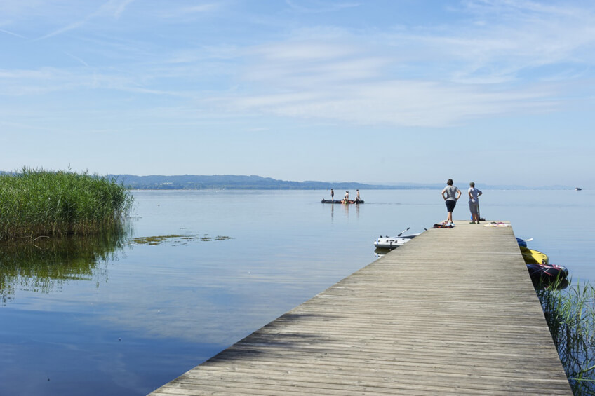 Auf dem Campingplatz TCS Camping Gampelen Neuenburgersee kann man Baden in natürlichem Gewässer.