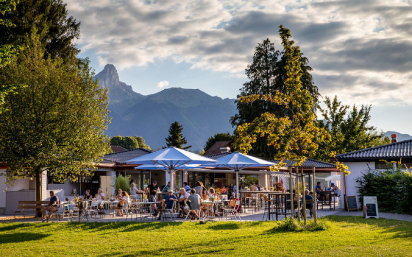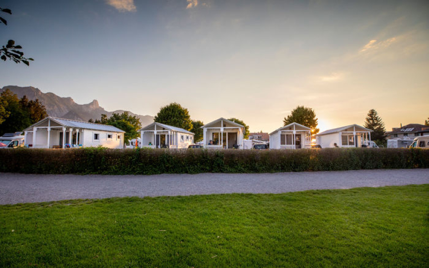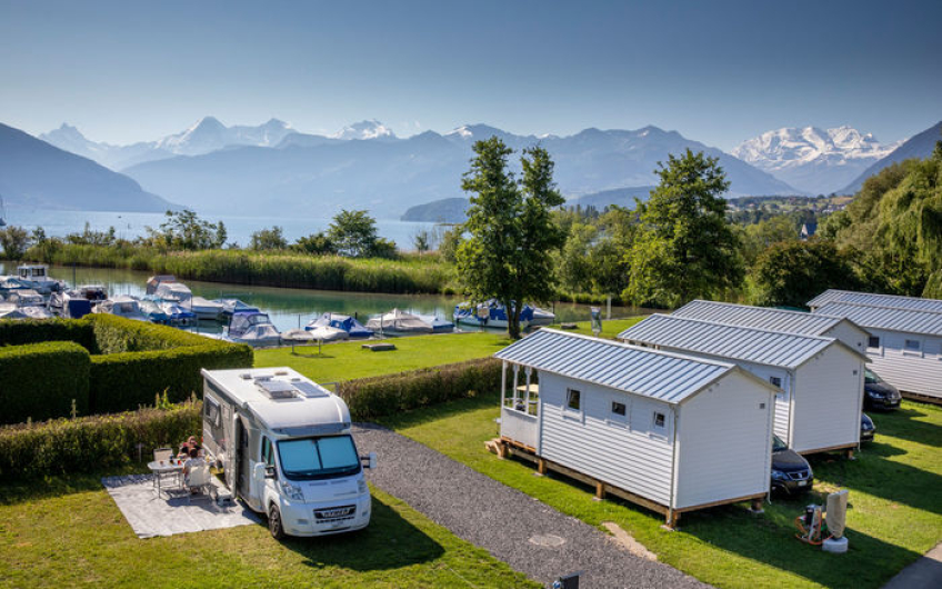 Das Panorama rund um den Campingplatz vermag immer wieder zu faszinieren, an Föhntagen meint man, die Viertausender berühren zu können. Ob Sie eine Schifffahrt unternehmen, den See zum Baden nutzen, ob Sie den belebten Aarequai entlangspazieren oder ganz einfach ein romantisches Picknick am Seeufer machen: Der See stimmt heiter und vergnüglich. Auch ein Ausflug in das Stadtzentrum Thun lohnt sich auf jeden Fall. Thun ist so gross, dass es eine fussgängerfreundliche eigene Einkaufsinsel ihr eigen nennt, so klein, dass in den Gassen und Strassen eine überaus herzliche Stimmung herrscht. Spezielles Highlight auf dem Camping: Schlafen in der Röhre im komfortablen Chalet – mieten Sie eine Glampingunterkunft und geniessen Sie beim Erwachen den einmaligen Blick auf den Thunersee und das Bergpanorama.