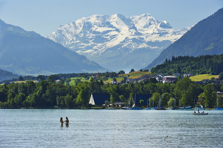 Auf dem Campingplatz TCS Camping Gwatt Thunersee kann man Baden in natürlichem Gewässer.