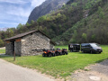 4- Personen Zelt auf dem Mini Camping in Lostallo im Misox, direkt am Radweg Chur - Bellinzona. Solaraussendusche und Trenn WC,
